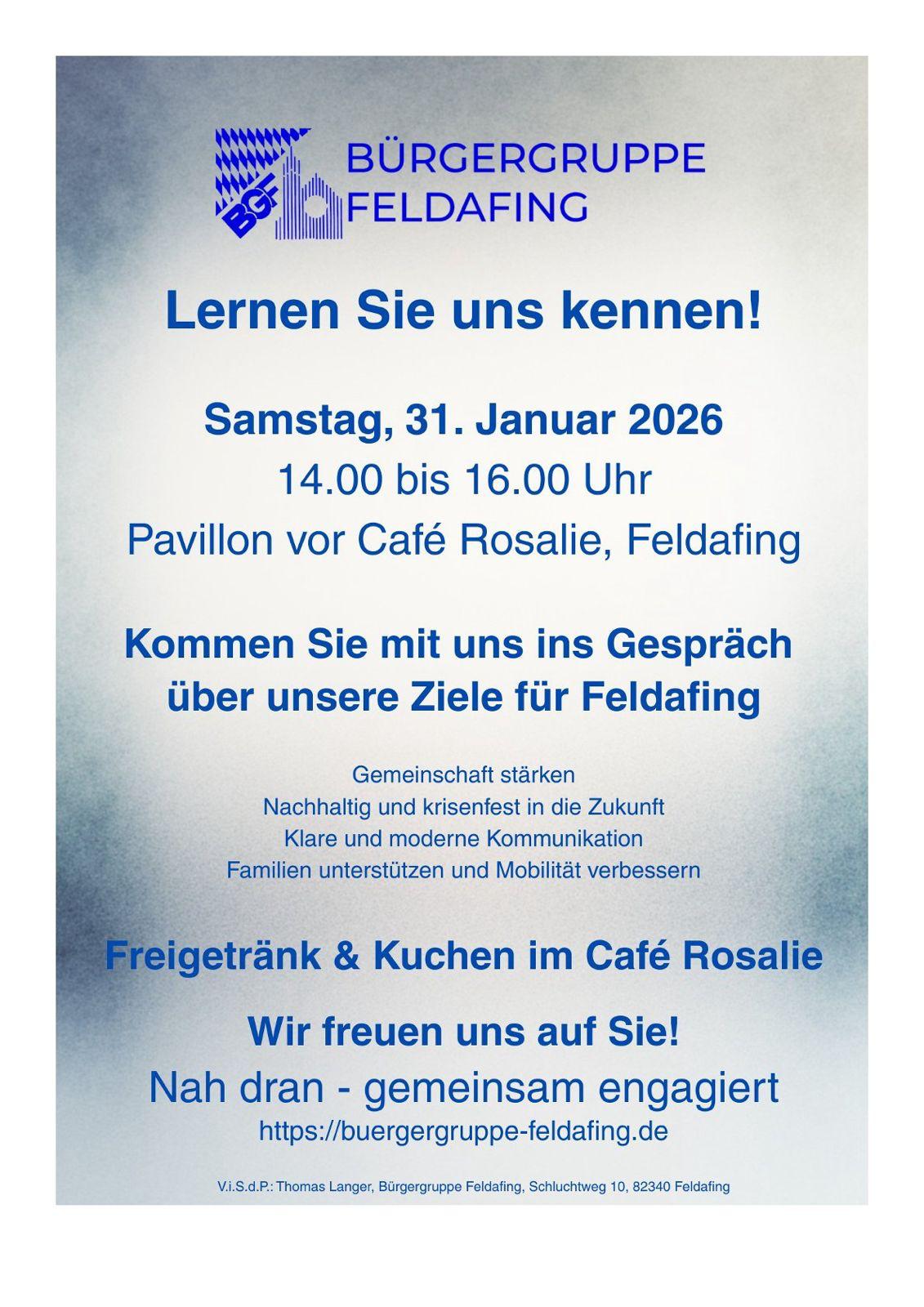 Samstag, 31. Januar 2026 - 14:00 – 16:00 Uhr · Café Rosalie, Feldafing – Lernen Sie uns kennen