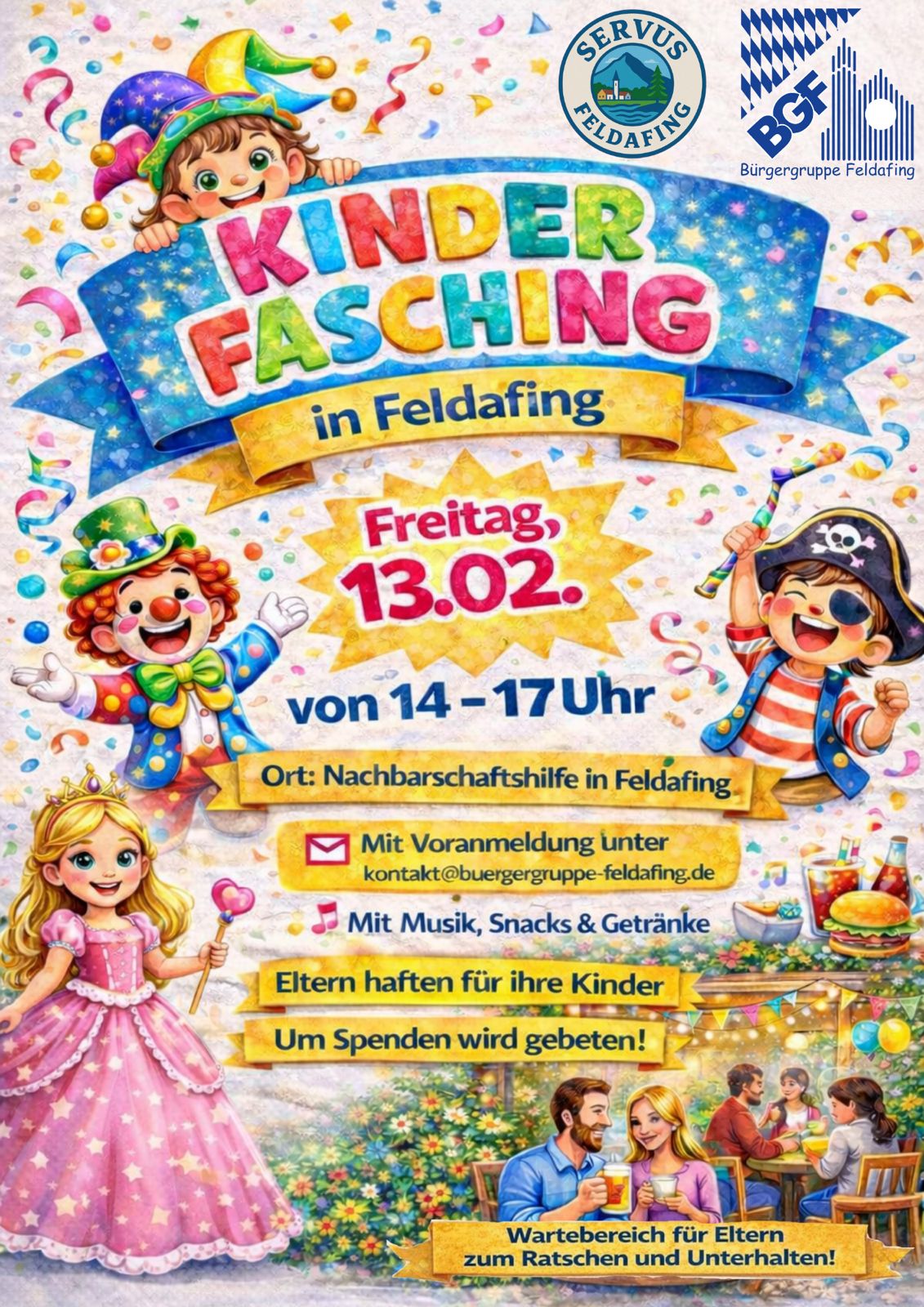 Anmeldung unter: kinderfasching@buergergruppe-feldafing.de